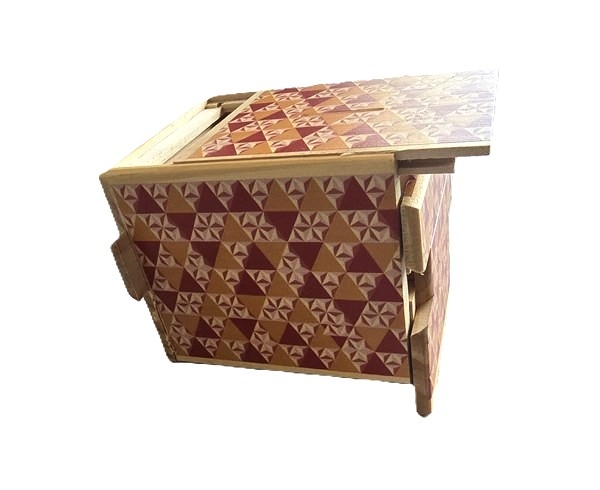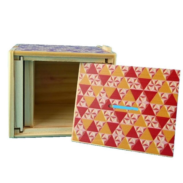 Flott japansk mynt boks. Fyll esken, gi den som gave og se mottaker av esken slite med å løse oppgaven for å komme seg inn til innholdet. Du kan selvsagt også benytte deg av boksen selv om du kan ha den i fred. Måler ca 11x10x10 cm og leveres i fin eske.