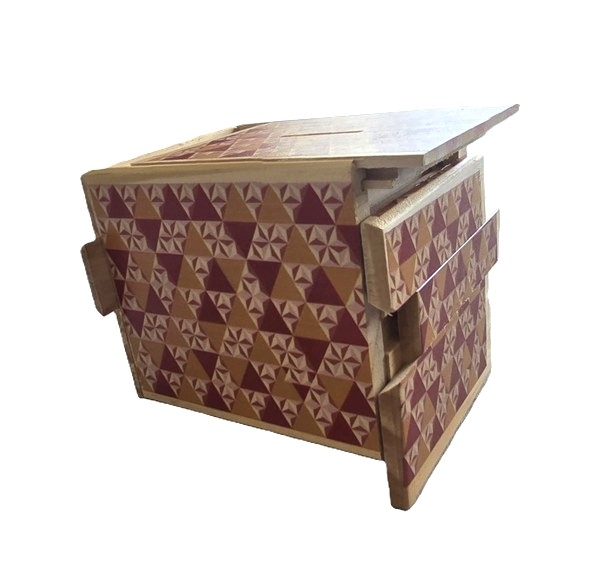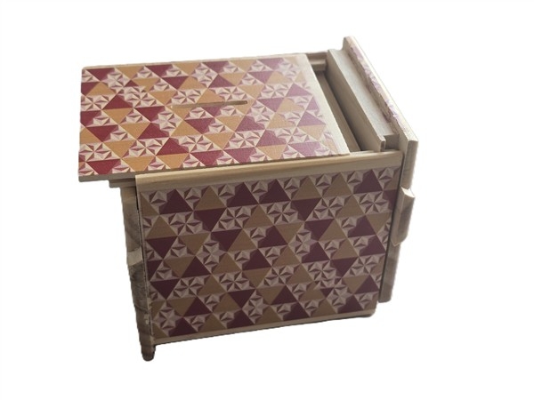 Flott japansk mynt boks. Fyll esken, gi den som gave og se mottaker av esken slite med å løse oppgaven for å komme seg inn til innholdet. Du kan selvsagt også benytte deg av boksen selv om du kan ha den i fred. Måler ca 11x10x10 cm. Level 3/5